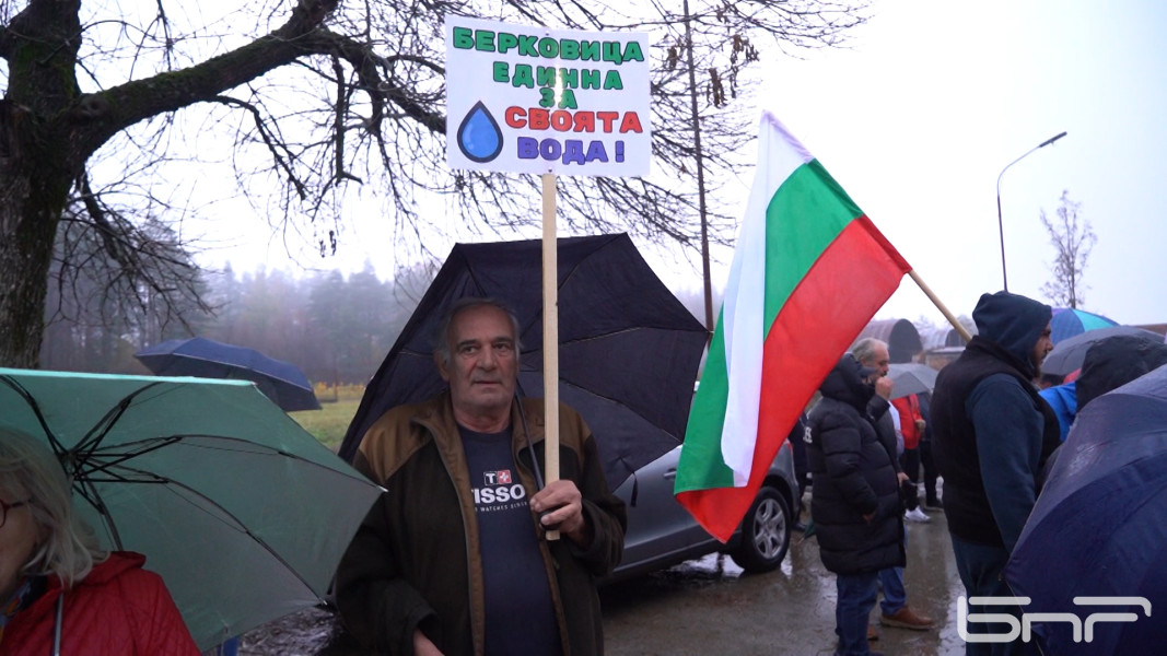 С плакати "Берковица - единна за своята вода" и "Не си даваме водата" на изхода на града по посока към прохода Петрохан местни жители излязоха на протест въпреки дъждовното време. Те са против приетия на първо четене Закон за водите, който задължава общинските ВиК дружества да станат част от областните асоциации.