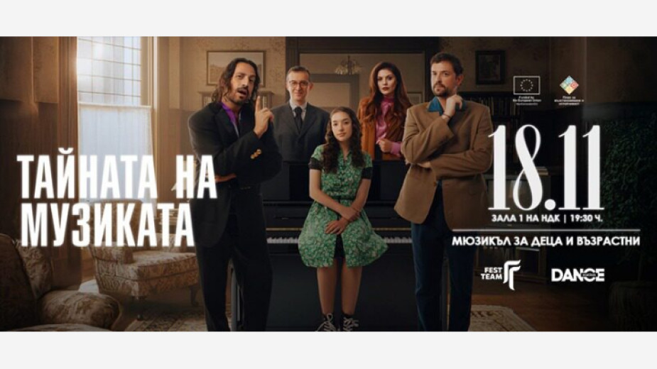 На 18-и ноември /вторник/ от 19.30 ч. в зала 1 на НДК ще бъде представен новият български мюзикъл “Тайната на музиката“.