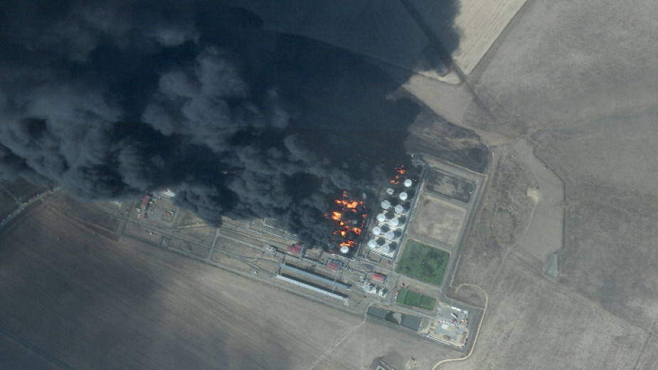 "В помещенията са забелязани експлозии и пожар. Според предварителната информация е ударено едно от съоръженията за първична преработка на петрол“, се казва в изявлението.