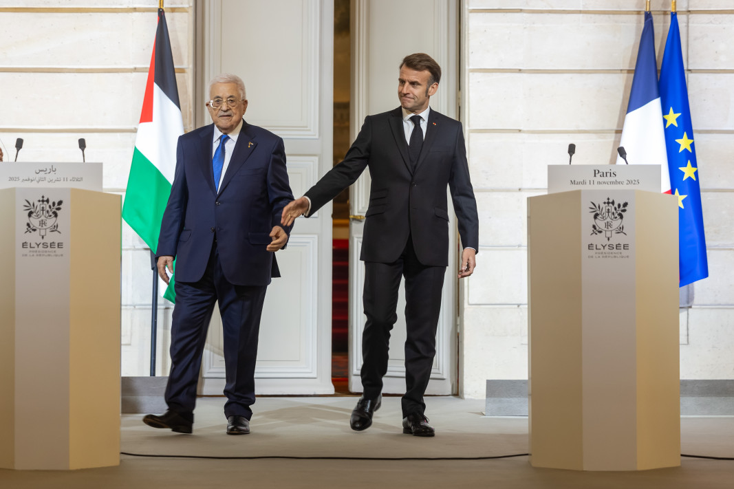 Френският президент Еманюел Макрон прие днес в Елисейския дворец палестинския президент Махмуд Абас, съобщава АФП.