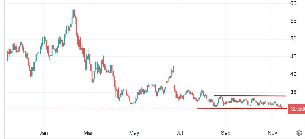 Графика на газовите TTF фючърси (в евро за мегаватчас)