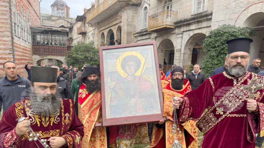 След всенощно бдение и света литургия рано тази сутрин с литийно шествие с чудотворна икона на свети Георги българският манастир “Свети Великомъченик Георги Зограф” на Света гора отбеляза есенния празник на свети Георги (по стар стил на 16 ноември), когато мощите му са пренесени от мястото на измъчването му в Лида в Мала Азия (днешния град Лод в Израел) в новоосветен християнски храм.