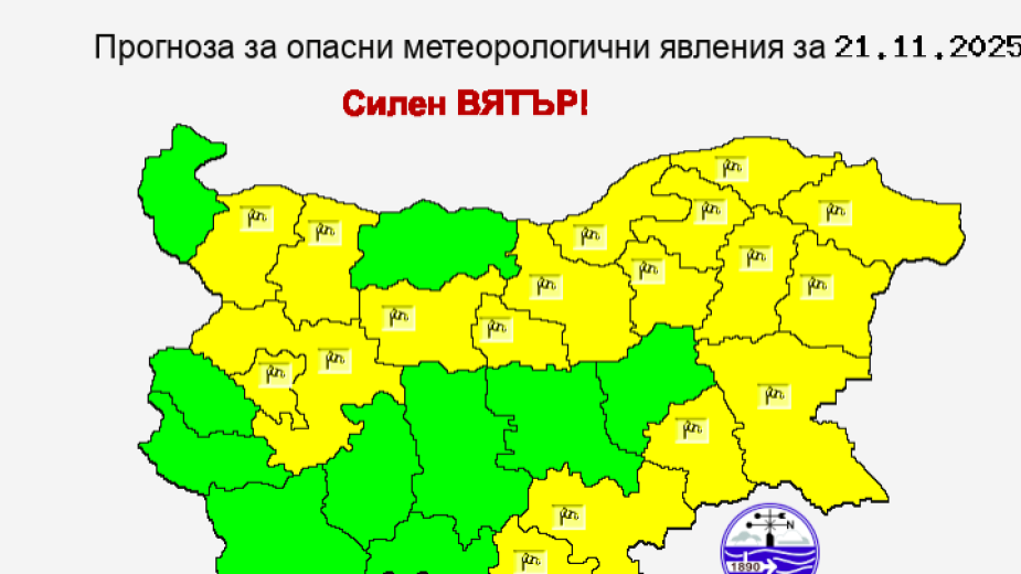 В петък, 21 ноември ще преобладава облачно, на много места в западната част от Дунавската равнина и Горнотракийската низина и мъгливо време, сочи прогнозата на НИМХ. На места в Западна България и Рило-Родопската област ще има валежи от дъжд, по-значителни в югозападните райони. Над централните и източните райони ще има по-съществени разкъсвания и временни намаления на облачността. В Източна България и на север от планините ще духа умерен и силен, поривист югозападен вятър, докато в равнините и котловините ще се задържи почти тихо.