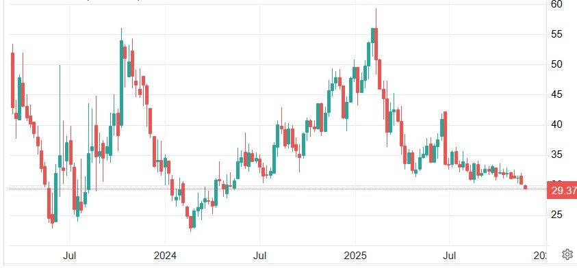 Фючърсите на европейския природен газ поевтиняват с над 2,5% през днешната търговия, пробивайки под 30 евро за мегаватчас за пръв път от май 2024 г., тъй като вносът на синьо гориво се увеличи, а дипломатическите усилия за прекратяване на войната между Русия и Украйна подобриха пазарните нагласи.