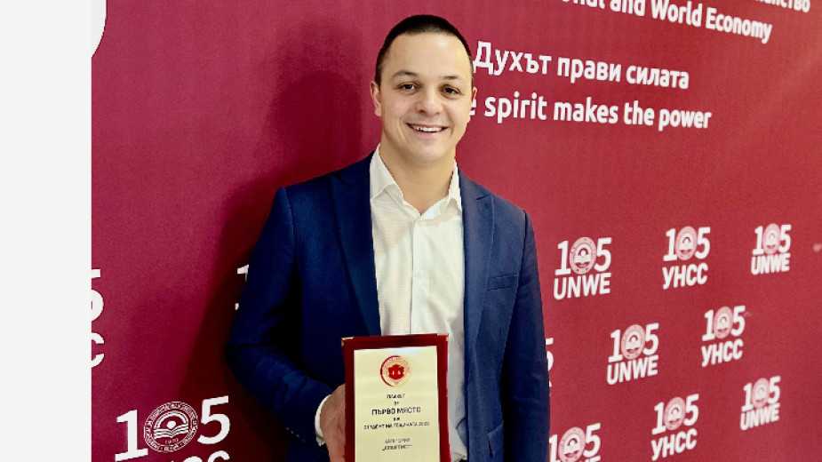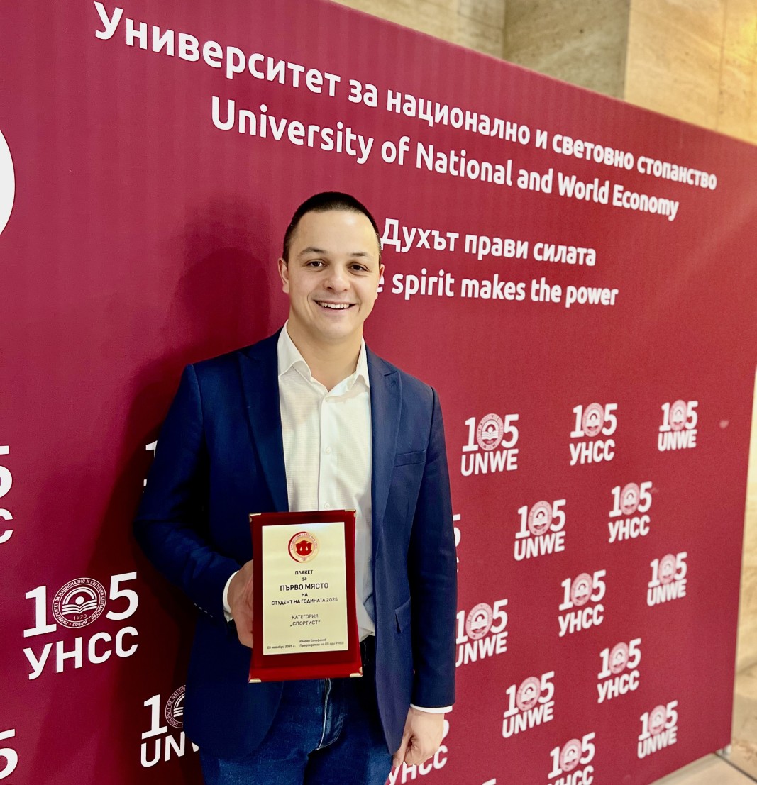 Цанков, който е първокурсник в магистърската програма по специалност „Спортен бизнес“, беше награден днес на церемония в аула „Максима“ от ректора на висшето учебно заведение проф. д-р Димитър Димитров.