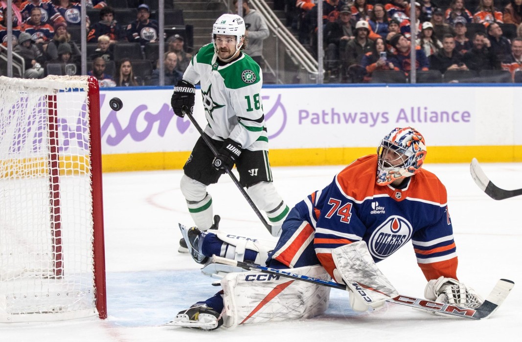 Титулярният вратар на Едмънтън Стюарт Скинър беше изваден от игра след първия период, в който допусна четири гола от осем удара. Калвин Пикард отрази 18 от 22 удара.