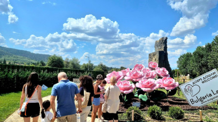 На входа - разходката ни започва със символа на България – казанлъшката маслодайна роза, „Роза дамасцена“. Това е и най-големият макет на рози у нас – най-голямата роза е 3,40, а най малката, поясняи Съни Сънински.
