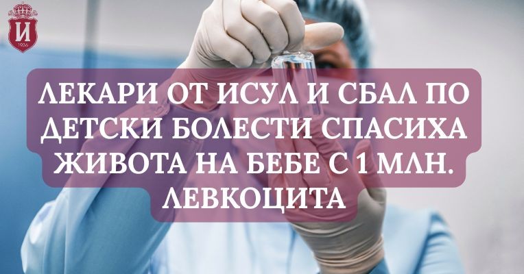 Със съвместни усилия, добра колаборация и демонстрирана истинска смелост, лекари от Интензивното отделение на СБАЛ по детски болести "Проф. Иван Митев" и Клиниката по детска онкохематология на УМБАЛ "Царица Йоанна – ИСУЛ" спасиха живота на 2-месечно бебе с 1 000 000 левкоцита в кръвта.
