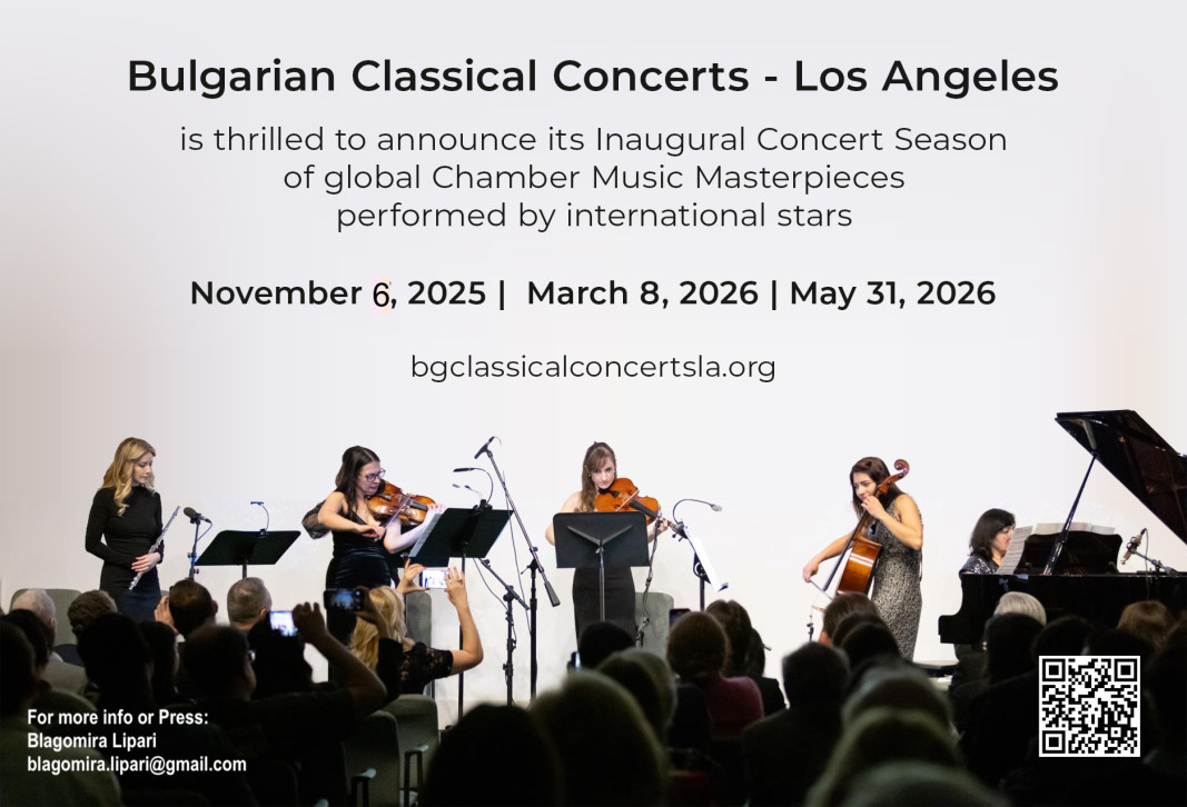 Новата фондация с нестопанска цел Bulgarian Classical Concerts – Los Angeles, основана от две изключително успешни и талантливи българки – цигуларката Благомира Липари и композиторката Пенка Кунева, с цел да се популяризира българската класическа музика в САЩ, официално започва дейността си с впечатляващ концерт на 6 ноември. Събитието е организирано съвместно с Генералното консулство на България в Лос Анджелис и Българската фондация за изкуство, култура и образование BgFACE в Сакраменто – Калифорния. Преди началото на музикалната програма за четвърти път ще бъдат връчени наградите на BgFACE.