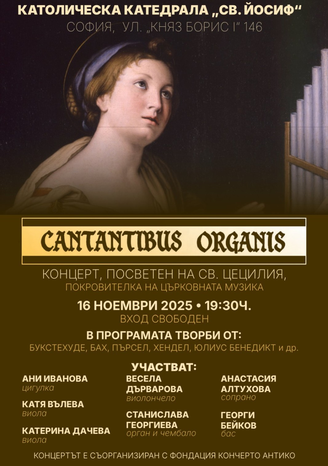 На 16 ноември 2025 г. в 19.30 ч. в католическата катедрала "Св. Йосиф" в София ще се проведе бароков концерт, посветен на празника на покровителката на църковната музика – римската мъченица св. Цецилия. Концертът "Cantantibus organis" е част от поредица от събития, организирани от фондация "Кончерто Антико" в памет на Янко Маринов (1975-2025), виртуозен пианист, органист и изследовател на старинната музика. Следващият концерт - "Воюващите кралици", е предвиден за края на декември.