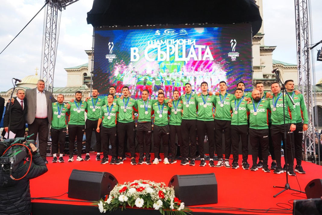 După primirea oficială la Aeroportul Vasil Levski în această dimineață, echipa națională de volei a Bulgariei, vicecampioană la Campionatul Mondial masculin din 2025 din Filipine, s-a întâlnit cu fanii săi la o ceremonie specială în fața catedralei Sfântul Alexandru Nevski din centrul Sofiei. Pe drumul spre piață, autobuzul cu noile legende ale voleiului a fost întâmpinat cu entuziasm de pietonii de pe străzile orașului. În fața catedralei Sfântul Alexandru Nevski, băieții au fost întâmpinați cu ovații și mai entuziaste. Oamenii scandau „Bulgarii-eroi” și fluturau steagul Bulgariei, cerând autografe și fotografii cu jucătorii.
