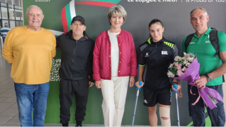 Председателят на Българския олимпийски комитет Весела Лечева посрещна на летище "Васил Левски" Валентина Георгиева, която получи контузия по време на Световното първенство по спортна гимнастика в Джакарта (Индонезия). "Издържах дългото пътуване,..