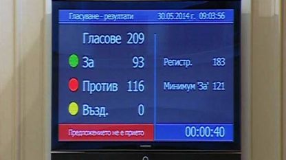 Вотът на недоверие срещу правителството на министър-председателя Пламен Орешарски не мина. От ГЕРБ поискаха прегласуване, но отново кабинетът бе подкрепен от 116 депутати. Веднага след обявяването на резултатите опозицията напусна пленарната зала. По-рано..