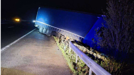 Реорганизация на движението е въведена заради възникнало пътнотранспортно произшествие на 346 км на автомагистрала "Хемус" в посока София - Варна. Това с8ъобщават от шуменската полиция. Инцидентът е станал след етапна връзка. Водач на тежкотоварен автомобил се е ударил в крайпътни мантинели, навлязъл е в другото платно за движение и е напуснал пътното..
