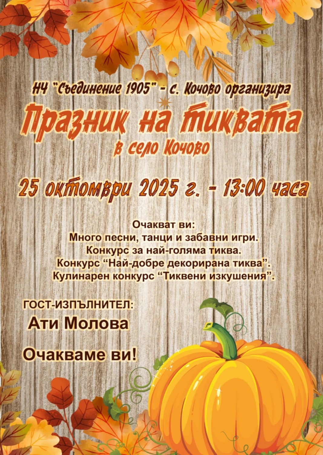 На празника в Кочово ще има забавни игри в чест на тиквата и концертна програма.