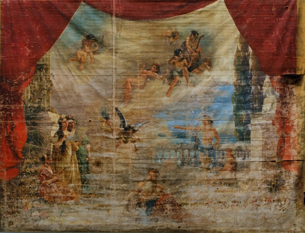 Тя е дело на виенски художници и отразява културното възраждане на епохата. Върху платното има много алегорични фигури, флорални мотиви и небесни ангели, то е с внушителните размери от почти 7х5 метра. Автентичната завеса е с изключителна художествена и историческа стойност.