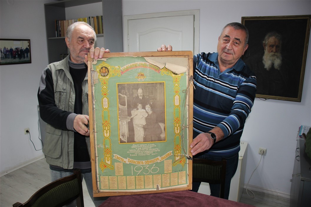 Любопитна подробност на дарението е, че на гърба на снимката с кандидат-подофицерите, е прикрепен голям еднолистов календар за 1936 година със семейна снимка на Цар Борис III.