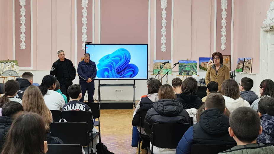 Полицейски служители от областната дирекция на полицията в Шумен изнесоха лекция пред седмокласници в СУ “Йоан Екзарх Български“ за справяне с агресията и действия при терористични заплахи.