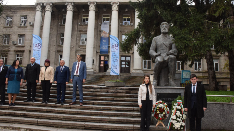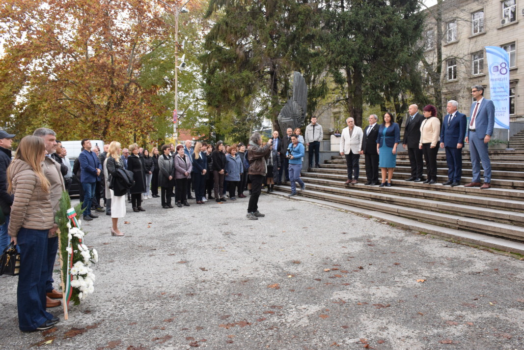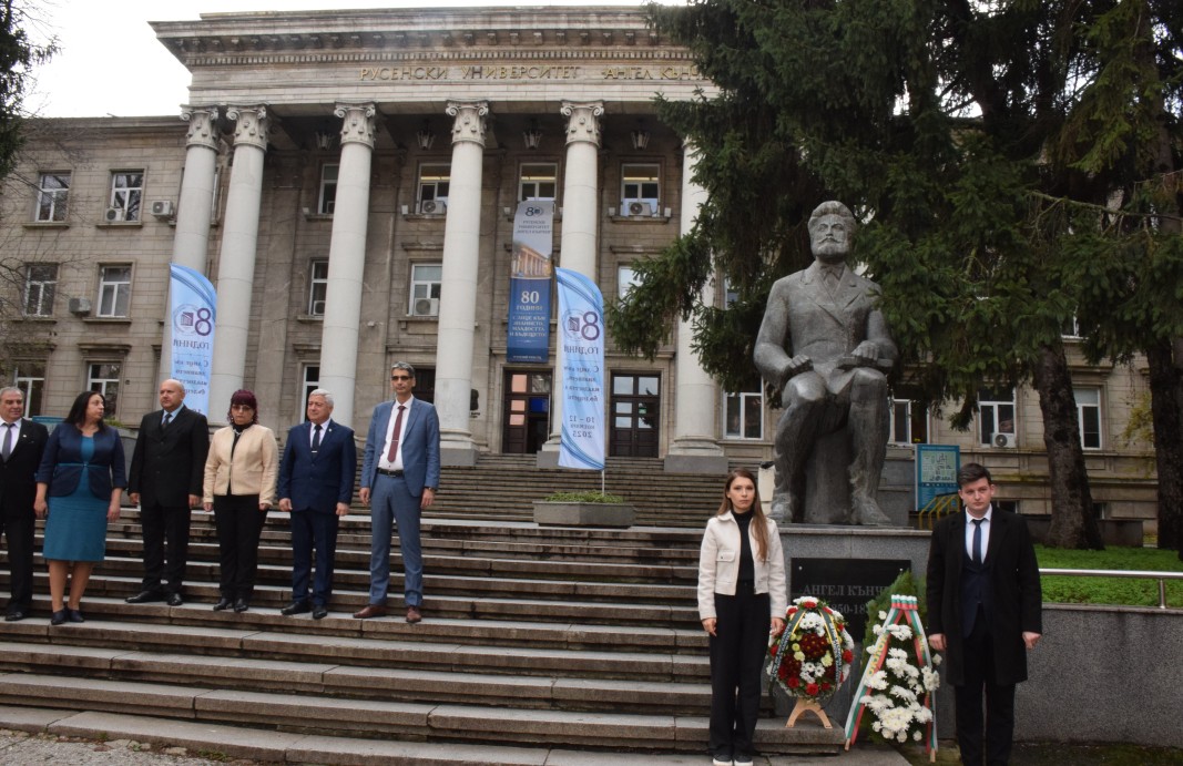 С поднасяне на венец пред паметника на Ангел Кънчев започнаха официалните чествания по повод 80-годишнината на Русенския университет. Тържеството пред Ректората събра представители на академичното ръководство, преподаватели, служители, студенти и гости на висшето училище.