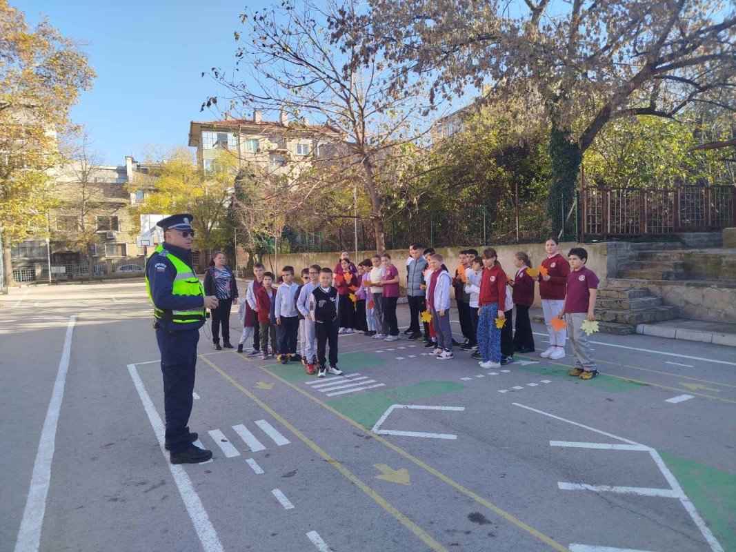 Ученици от 4 „в“ клас предадоха „златни“ правила за безопасно придвижване от и до училище на своите по-малки съученици от 2 „в“ клас в училището. С помощта на полицейските инспектори Милен Минев и Мирослав Милев от РУ- Шумен научиха, че трябва да пресичат само на обозначени места, да се оглеждат внимателно и да не играят близо до пътното платно.