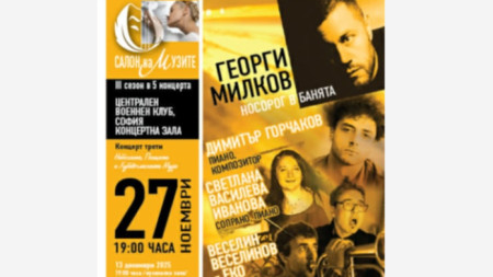 Салон на музите - няма как да не свързваме фестивала със Светлана Иванова. Пианистка и певица. Завършила в София, после учила във Виена. Живяла в ЮАР и Австрия. Сега е наш гост, който представя предстоящия им спектакъл: "Започваме с "Носорог в банята" от сборника разкази "Ръчен багаж" на журналиста Георги Милков, другата муза е небесната с Росен..