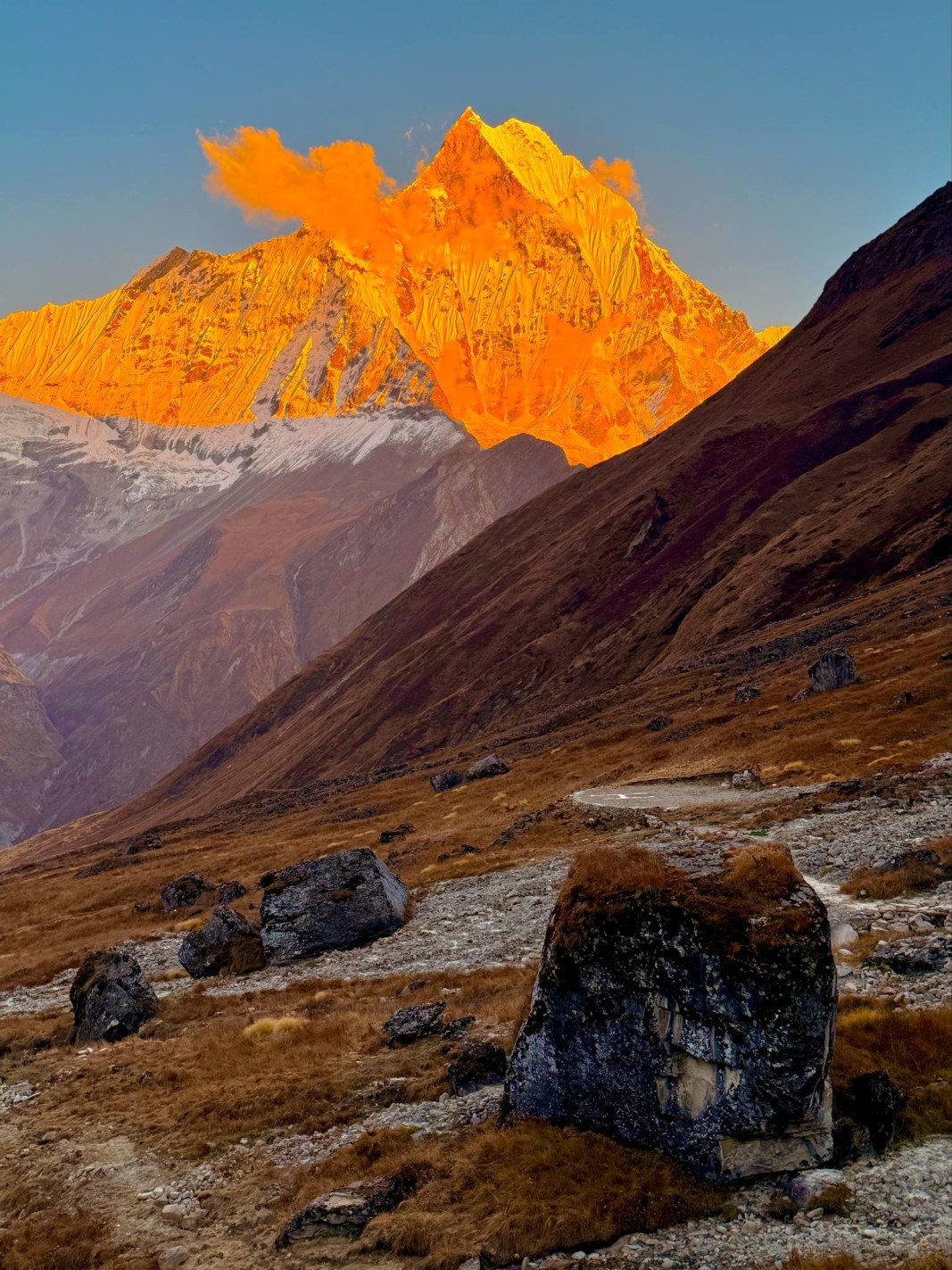 Базов лагер на Аннапурна - 100 км, хиляди стълби и 4,100 м надморска височина, 15,000 стъпала.