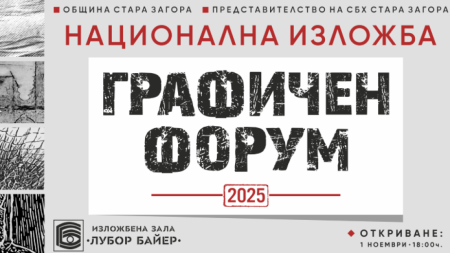 Национална изложба „Графичен форум“ ще бъде открита на 1 ноември 2025 г. от 18.00 ч. в изложбена зала „Лубор Байер“. Събитието се организира за девета поредна година в града с подкрепата на Община Стара Загора, съобщиха от общинския пресцентър. Целта на..