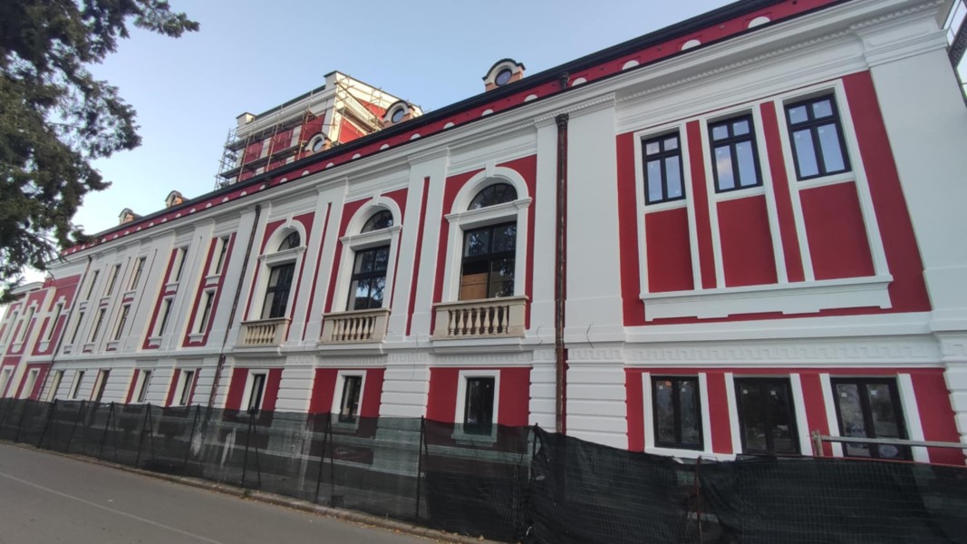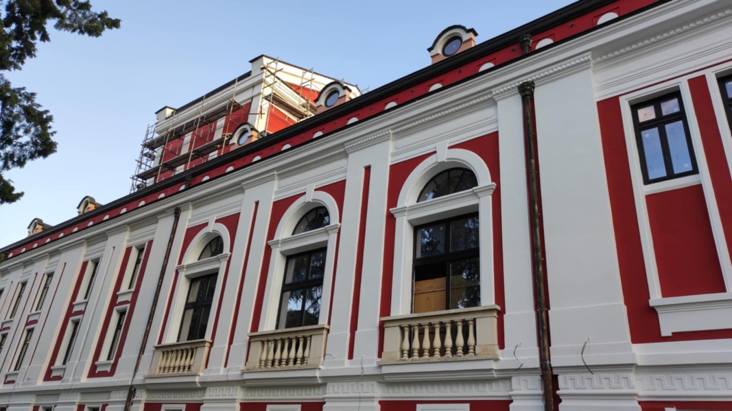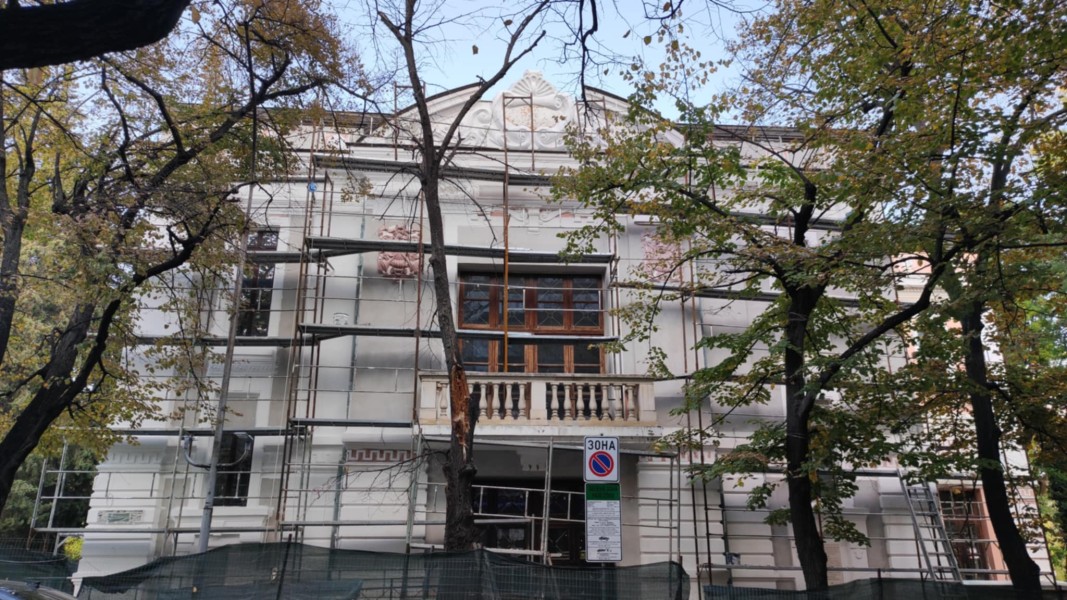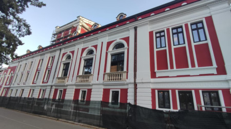 Източната и северната фасади на сградата са пребоядисани и в момента се нанасят цветовете на куполната част над покрива, след което предстои работа по южната и западна фасади. Допълнително, след премахване на строителното скеле, с автовишка ще се довършват орнаментите, каза арх. Паскалев.