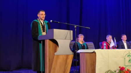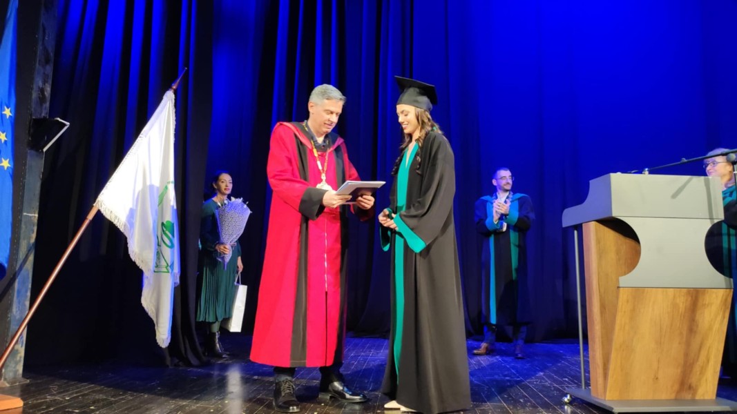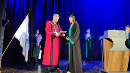 „Не забравяйте, че Вашата Алма матер – Тракийския университет, винаги ще бъде Вашия духовен дом“, каза в обръщението си към абсолвентите ректорът на висшето учебно заведение проф. Мирослав Карабалиев: