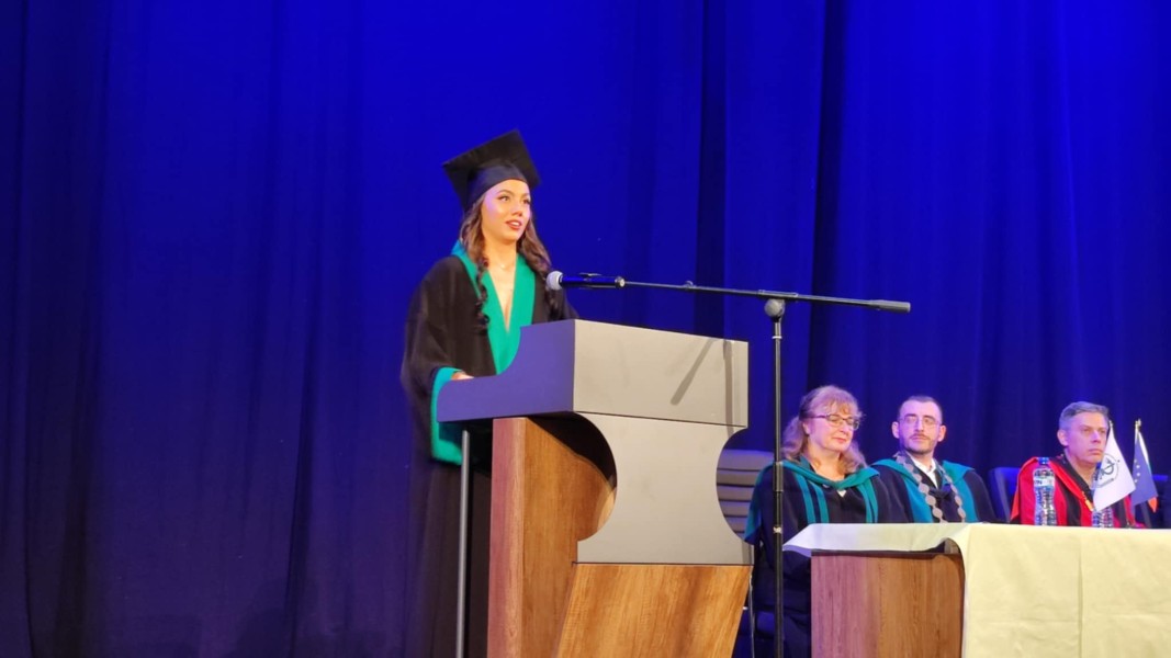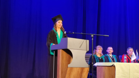От името на българските студенти поздрав и благодарност към всички, които са били до тях по трудния път към медицината, оправи отличничката на випуска д-р Ралица Дочева: