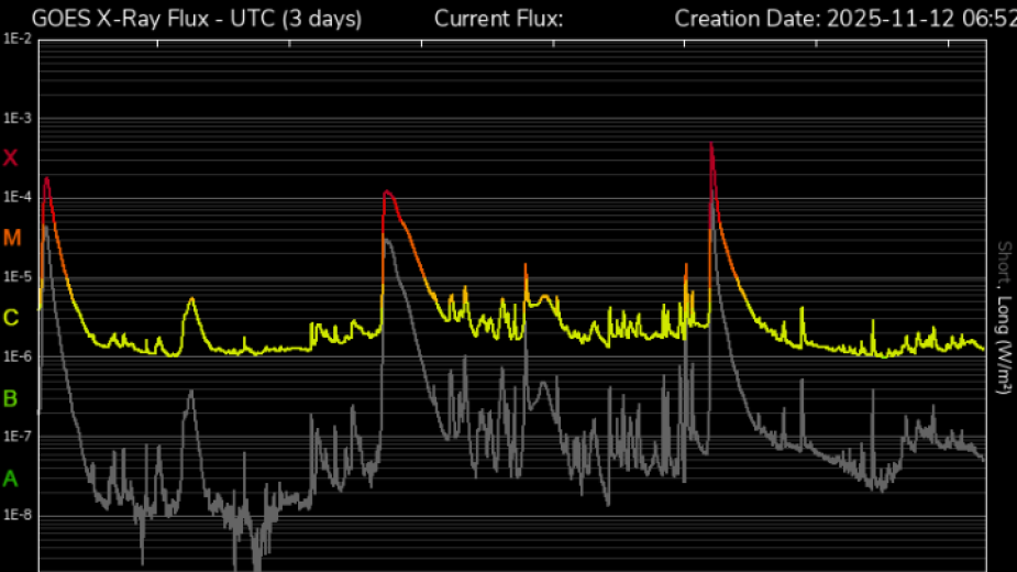 У нас апаратурата в Геомагнитната обсерватория в Панагюрище регистрира стойности на екстремно силна магнитна буря в ранните часове на деня. Според учените това е резултат от канонадата от слънчеви изригвания през последните три дни.