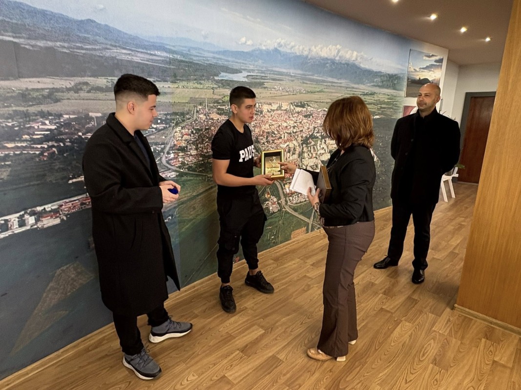 В Световния ден на доброто кметът на община Казанлък Галина Стоянова отличи двамата млади казанлъчани – Иван Иванов от ПГТТМ и Христо Денев от ПМГ „Никола Обрешков“.