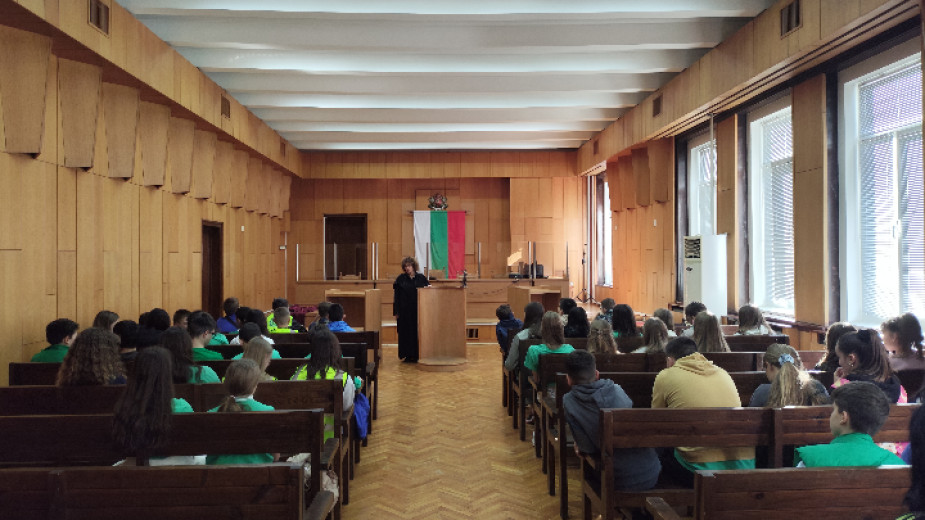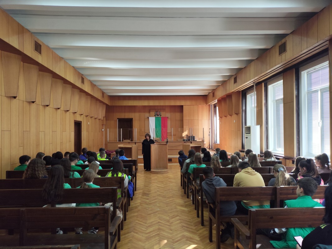 Децата, придружени от своите класни ръководители, бяха посрещнати от окръжния съдия Ива Стефанова. Тя ги запозна с историята на съдебната палата, както и с дейността на различните служби, които подпомагат работата на съда. В най-голямата зала шестокласниците чуха лекция за основните принципи в дейността на съдебната система. Съдия Стефанова им обясни как протича едно съдебно заседание, какви права имат децата, как се осъществява законовата им закрила, както и от каква възраст носят наказателна отговорност.