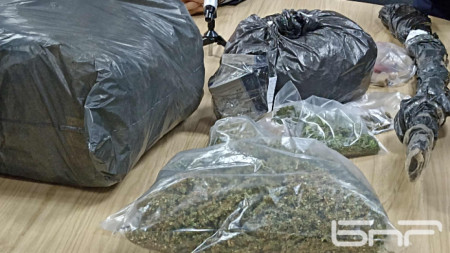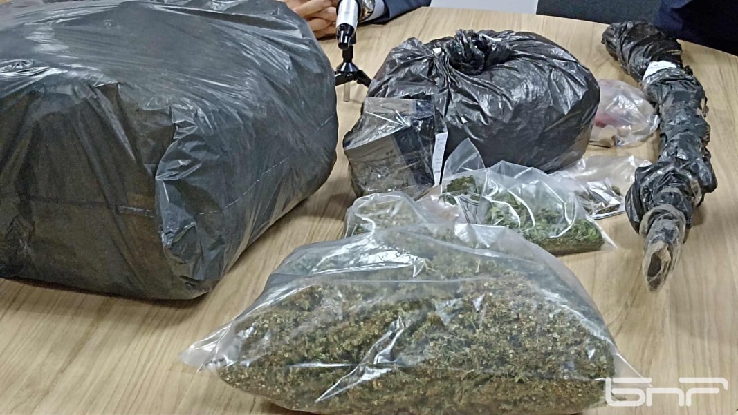 „При претърсването и изземването са открити около 12 килограма марихуана и ловна пушка двуцевка с 22 патрона 16 калибър, иззети са и 600 хапчета ксанакс“, допълни Христов: