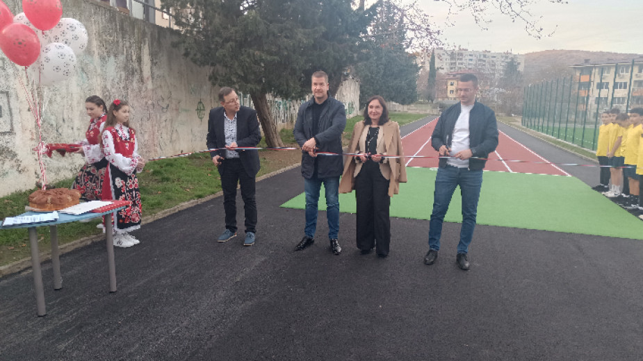 Преподавателят по физическо възпитание Мартин Банчев изрази задоволство от новите спортни придобивки в двора на училището и обясни, че лекоатлетическата писта е с 4 коридора, изградени с тартанова настилка.