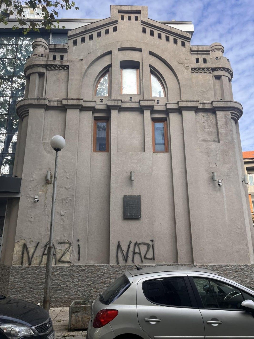 Причината е надпис с черна боя "Наци" на фасадата на синагогата, съобщи Калдерон.