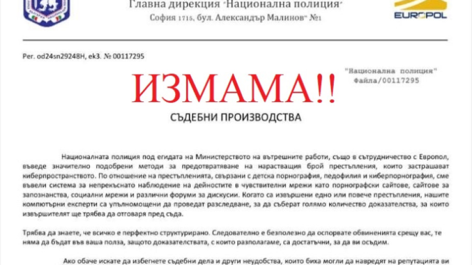 Фишинг атаката чрез имейли се разпространява активно в интернет пространството, като измамните съобщения са озаглавени като "Съдебни производства", предупреждават от Главна дирекция "Национална полиция".