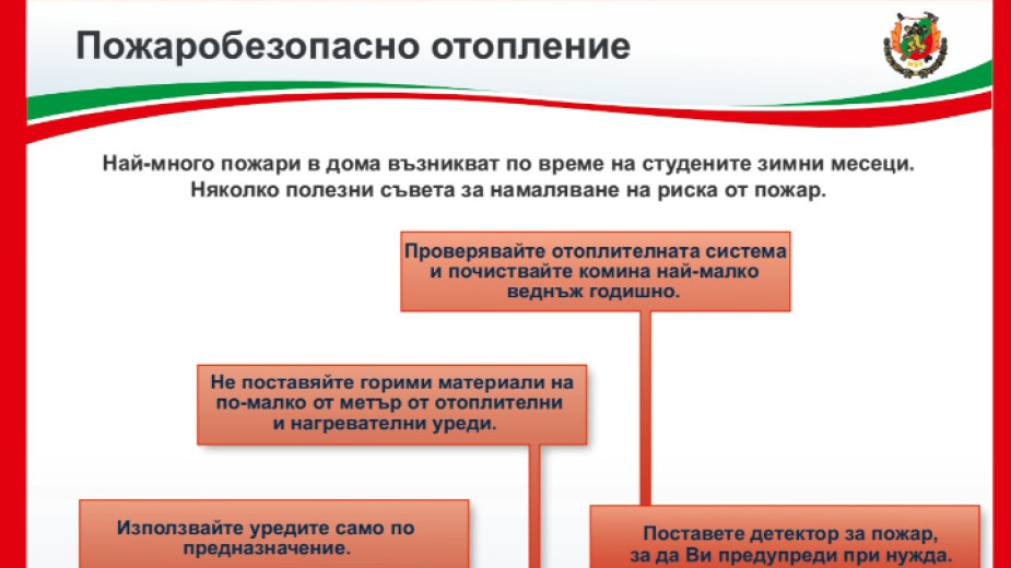 През есенно-зимния сезон значително се завишава потенциалната опасност от възникване на пожари в домовете поради неправилно ползване на отоплителни и нагревателни уреди или техническа неизправност. Правилният избор, компетентният монтаж и внимателната експлоатация на отоплителните уреди са гаранция за пожаро-обезопасеността на нашия дом. За да предотвратите пожар в жилището си - не ползвайте нестандартни отоплителни уреди, не ги оставяйте без наблюдение и спазвайте противопожарните изисквания и указанията за безопасна експлоатация на всеки уред, съветват от Районната служба "Пожарна безопасност и защита на населението" във Варна.
