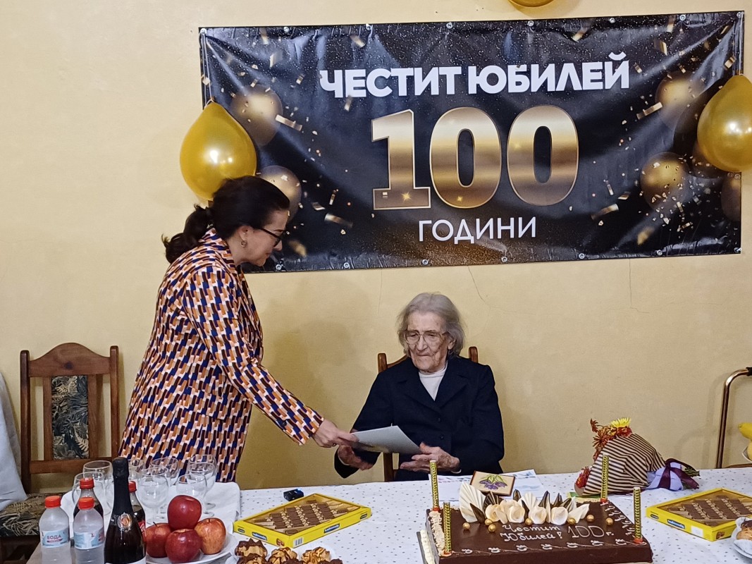 С празнична торта и почерпка отбелязаха 100-годишния юбилей на Гена Енчева в общинския Дом за стари хора „Гергана“. Заместник-кметът с ресор социални дейности Снежана Апостолова лично поздрави рожденичката и ѝ пожела здраве и радост. Щастливи сме да виждаме позитивни, ярки и силни примери като вас, изтъкна Апостолова.