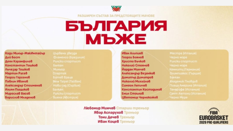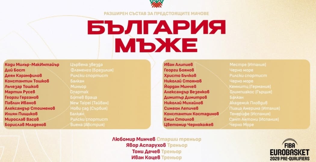Трима баскетболисти на "Черно море Тича" са повикани в националния отбор.Става дума за Николай Стоянов, Георги Боянов и Цветомир Чернокожев. Предстои ни първи мач от предварителните квалификации за Евробаскет'2029 срещу Армения.Тримата са основни състезатели в отбора на "моряците". Цветомир Чернокожев Георги Боянонв