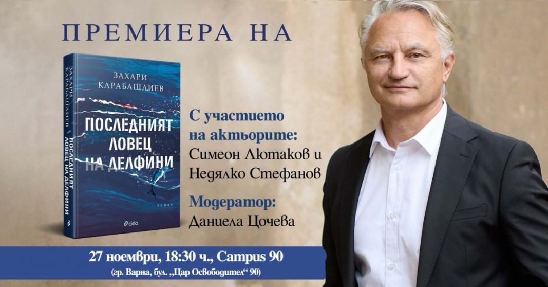 Официалната премиера на „Последният ловец на делфини“ е в София на 2 декември 2025 г., но днес Захари Карабашлиев е в родния си град Варна за специална предпремиера – от 18:30 ч. в Campus 90 (бул. „Цар Освободител“ 90), с участието на актьорите Симеон Лютаков и Недялко Стефанов. Модератор на събитието ще бъде Даниела Цочева.