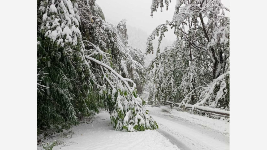 Заради обилният снеговалеж и паднали клони от дървета остава затворен за движение проходът Петрохан.