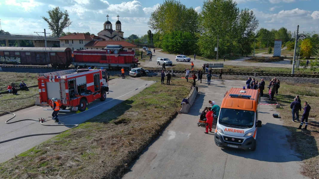 Четирима ученици, избягали от час по математика, пострадаха при "катастрофа" между автомобил и товарен влак. Инцидентът стана на неохраняем жп прелез в жк "Строител" във Видин. С него започна Съвместното областно учение на съставните части на Единната спасителна система при пътнотранспортни произшествия, което тази година бе на тема "Осигуряване на ефективно и адекватно реагиране на компетентните органи при получаване на сигнал за ПТП с пострадали".
