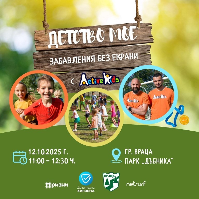 Събитието, подкрепено от Община Враца, NetSurf и Active Kids, цели да припомни колко важни са движението, социалните контакти и преживяванията на открито в епохата на дигиталните технологии.