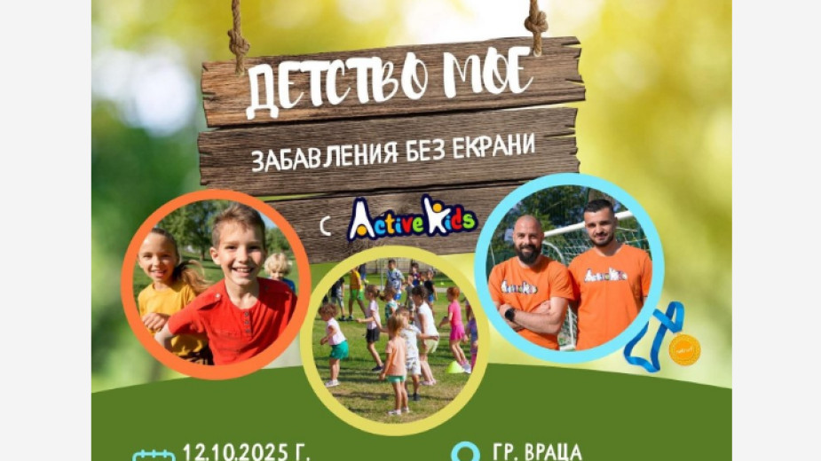 На 12 октомври, в неделя, Враца ще се превърне в сцена на едно незабравимо пътешествие в детството. В парк „Дъбника", от 11:00 до 12:30 часа, инициативата „Детство мое – Забавления без екрани" ще отведе участващите в света на безгрижните игри и искрения детски смях.