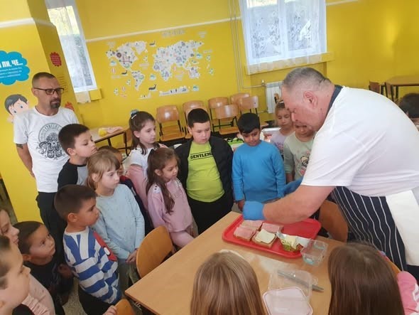 Учениците от 1. а клас на СУ „Иван Вазов“ в Мездра преживяха истинско кулинарно приключение по време на урока по Технологии и предприемачество. В училищната столова те се срещнаха с шеф Стефан Ватов, който демонстрира как се приготвя перфектен клуб сандвич. След това децата приложиха наученото на практика, като сами направиха своите сандвичи и опитаха резултата.