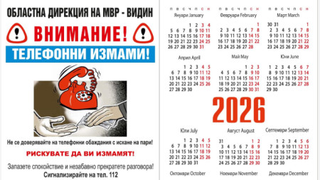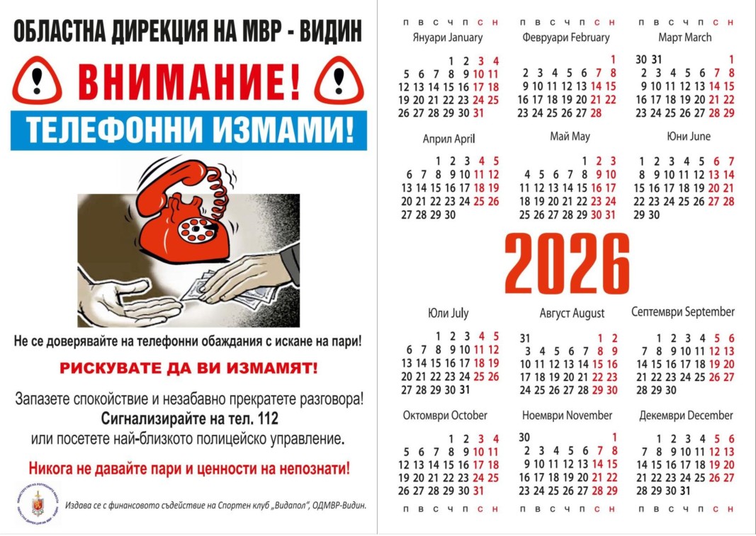Флаерът със съвети е във формат на календар за 2026 година. Ползвайки го, възрастните хора ще могат да си припомнят препоръките към тях и да не се доверяват на обаждания с искане на пари в периоди на активизиране на телефонните измамници.