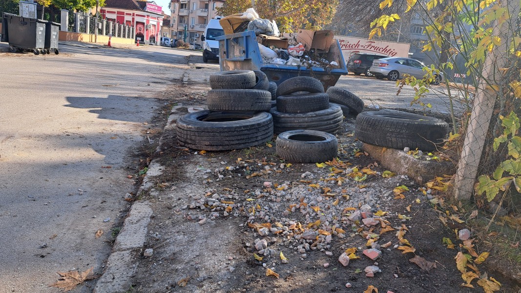 "Има си определени места за тях... Трябва да има някъде място обозначено на публично място, да се види къде се събират. Да знаят хората, може би не знаят... Аз едната, ако имам кола и имам такава гума, аз не знам къде трябва да отида да я изхвърля... Не е редно да е така, разбира се... Не би требвало да стоят тука... Не, това не е нормално. В гумаджийницата като ми сменят гумите, си ги оставям там. Те къде ги изхвърлят, нямам представа. В целия град е така. Това е просто нехайнство от хората, според мен... Трябва да има фирма, мисля аз, която да ги извозва. Не, не трябва да е така... Това е българинът, няма култура... В никакъв случай до контейнерите, не. Къде се изхвърлят? Би трябвало да има някъде депо за рециклиране. Но, във Видин няма, доколкото знам. Изхвърлят ги до кофите за боклук, те тука в центъра на града. На "Ташкюприя, това е. Като гледам има и товарни, има и от леки, и от бусове. Гумаджийното е тука..."
